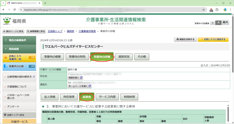 ※利用者情報も見ることができます。利用者人数に対する職員数を知ることができますよね。
